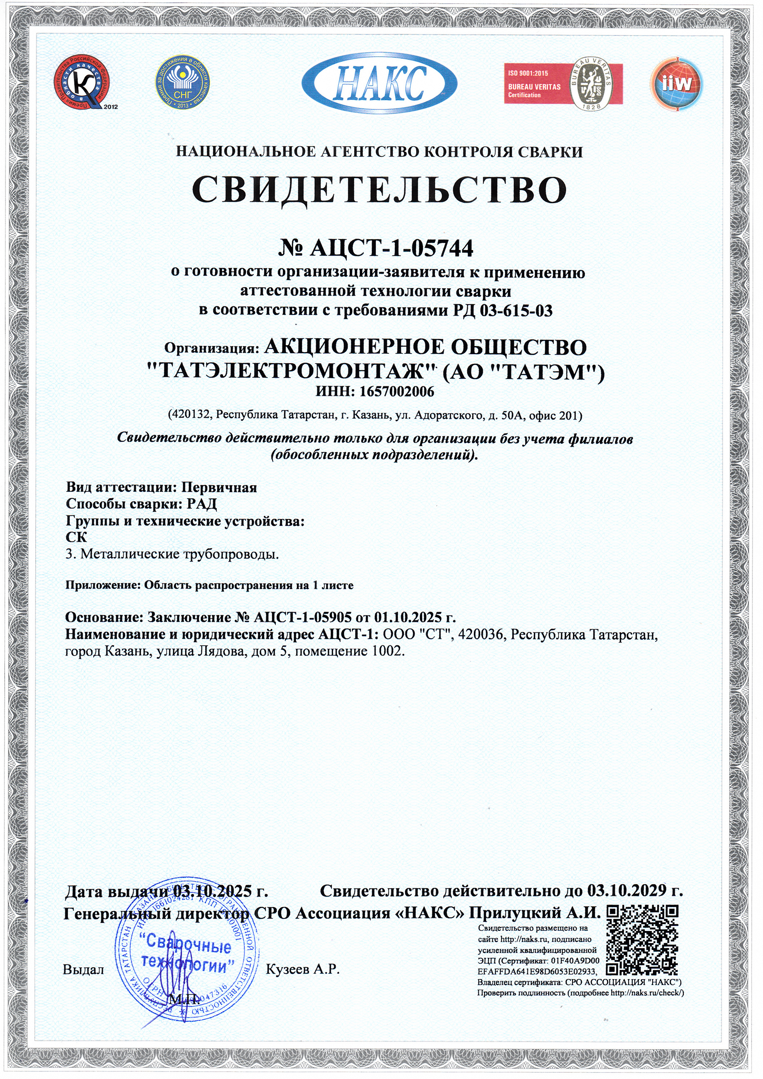 СЕРТИФИКАТЫ СИСТЕМЫ МЕНЕДЖМЕНТА КАЧЕСТВА