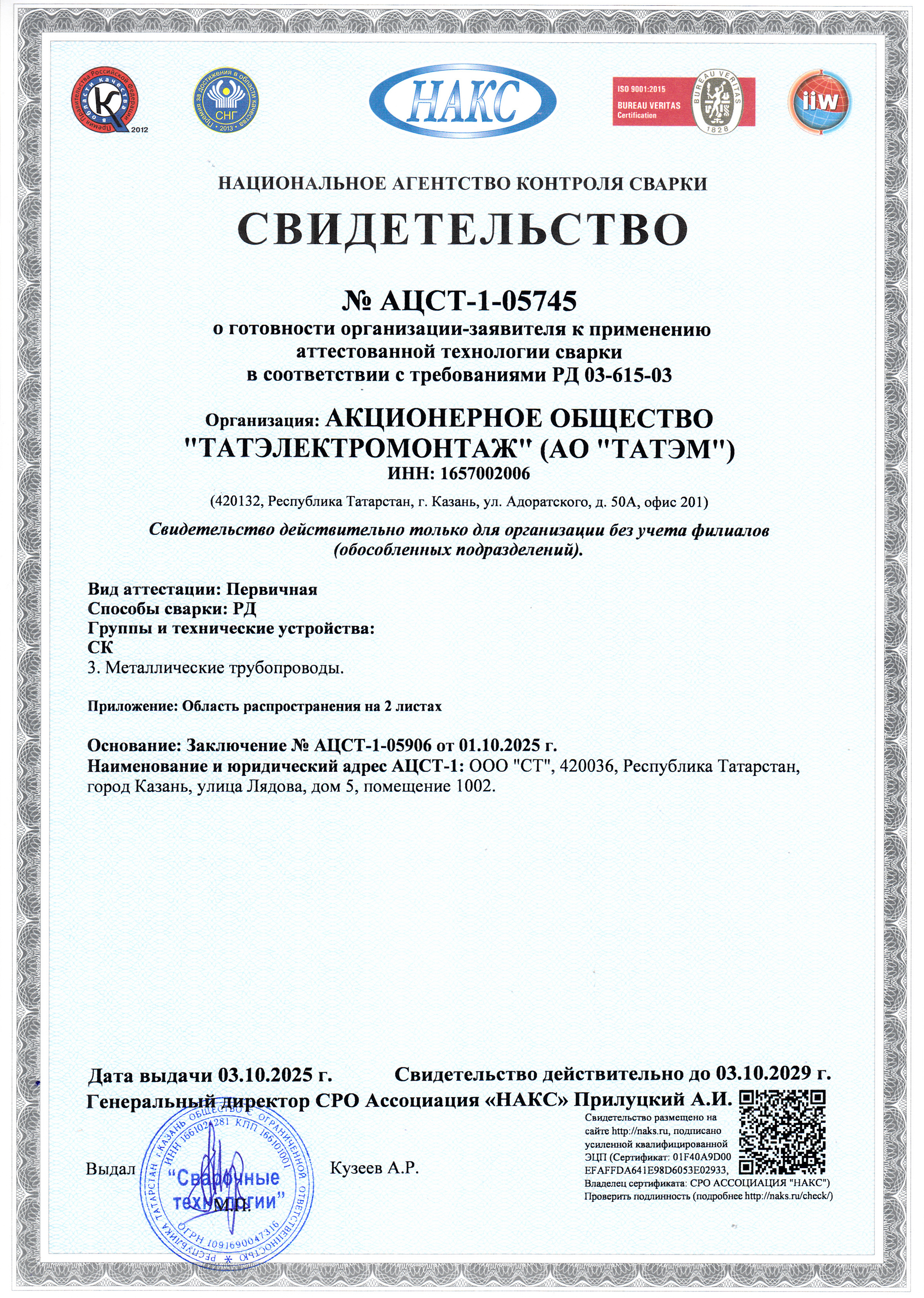 О ГОТОВНОСТИ ОРГАНИЗАЦИИ-ЗАЯВИТЕЛЯ К ПРИМЕНЕНИЮ АТТЕСТОВАННОЙ ТЕХНОЛОГИИ СВАРКИ